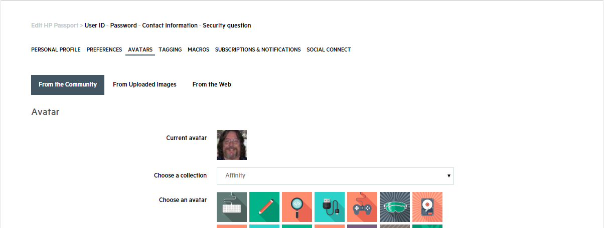 The "Avatars" link allows you to set or change the visual "avatar" displayed next to your posts and replies, as well as on your "Profile" page and private messages.